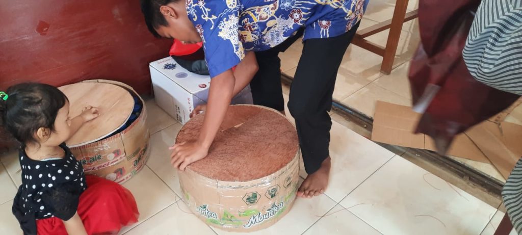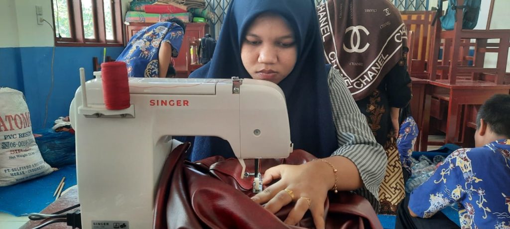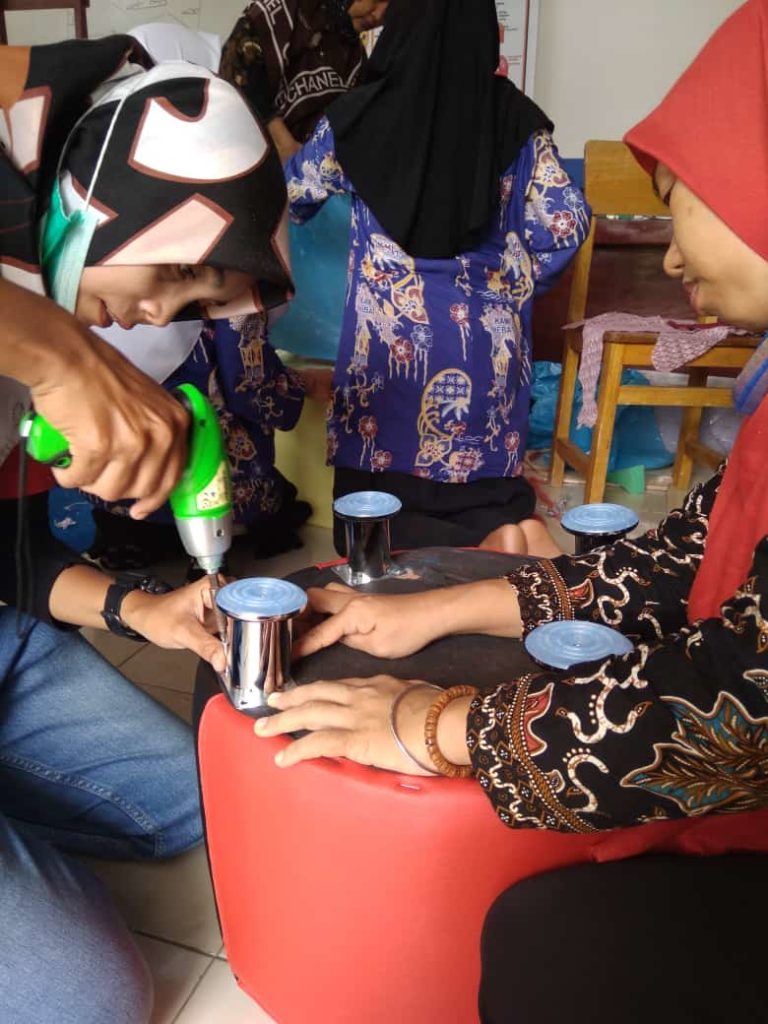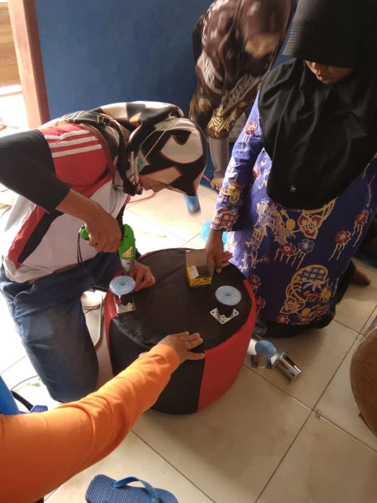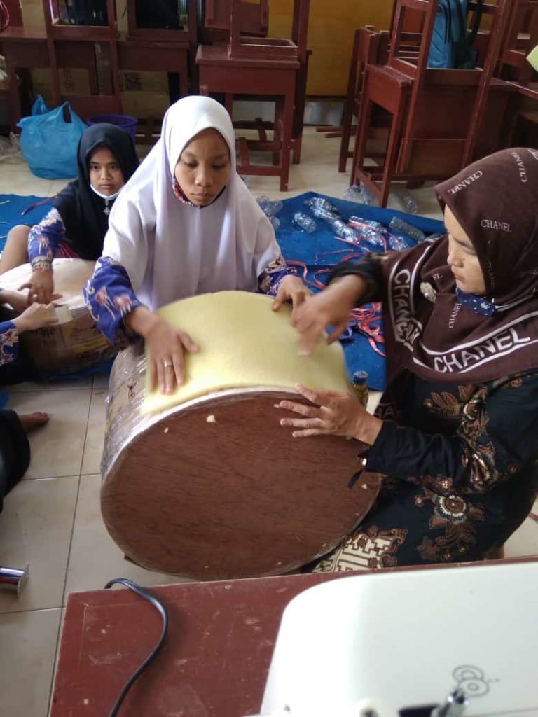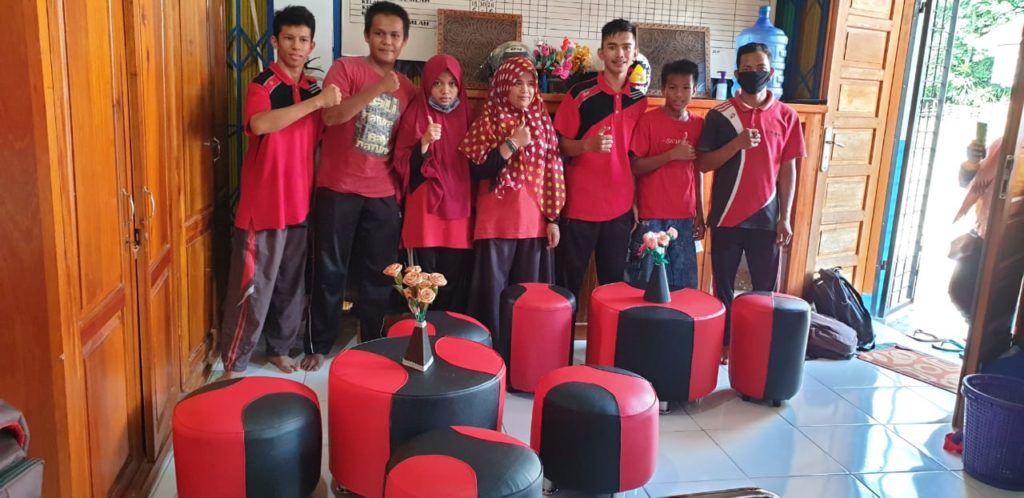 Meja dan kursi yang elegan ini ternyata terbuat dari ban bekas yang dibungkus dengan kain pembungkus khusus sofa. Bagian atas kursi ditutup dengan spons, sedangkan bagian atas meja ditutup dengan kaca maupun kayu. Meja dan kursi ini dibuat oleh siswa-siswi SLB Aisyiyah Sijunjung yang didampingi langsung oleh Ibuk Mia Aslamiah dan guru-guru SLB Aisyiyah Sijunjung.