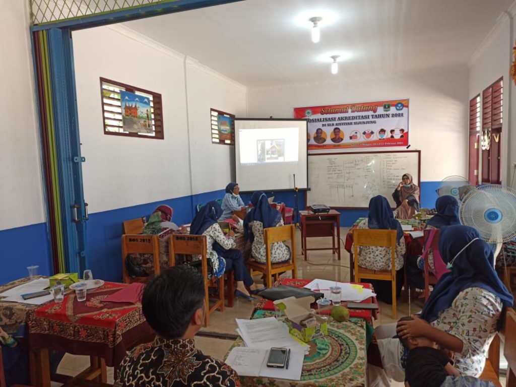 SIJUNJUNG, 20 Februari 2021- Kemajuan sekolah sangat tergantung kepada kinerja kepala sekolah bersama staf pengajar beserta siswa-siswi SLB Aisyiyah Sijunjung, kata Drs Muhammad Lutfi M.Pd, pada acara sosialisasi akreditasi di SLB Aisyiyah Sijunjung, Sabtu (20/2).